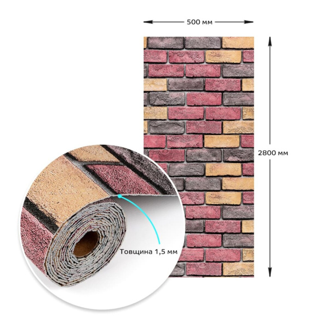 Самоклеючі шпалери 2800х500х1,5мм Червона екатериновлавська цегла (D) SW-00001944