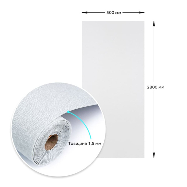 Площа: 2800 х 500 х 1,5 мм – 1,4 м2