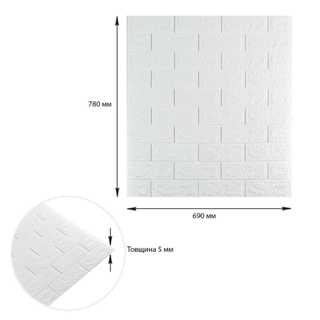 3D панелі самоклеючі – декоративне покриття для стін, виконане з легкого та міцного матеріалу – пористого поліпропілену (ППП). Основна особливість – рельєфний малюнок у вигляді цегли у широкому різноманітті кольорів та наявність клейового шару, що дозволяє встановити панелі без необхідності застосування додаткових матеріалів.