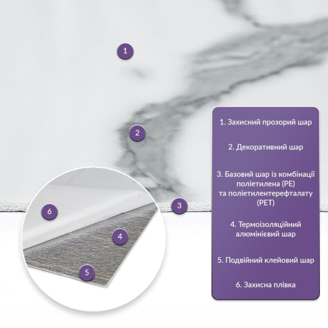 Матеріал: PE+PET, складається з суміші двох полімерів: поліетилену (PE) та поліетилентерефталату (PET) Розміри: Рулон: 60 см х 300 см х 2...