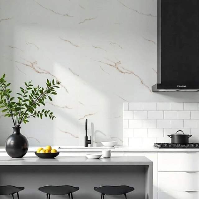 • 2. Стійкість до вологи: матеріал стійкий до впливу вологи та пари, а також до появи плісняви, що робить його придатним для використання у приміщеннях з високою вологістю, таких як ванни та кухні. Плитка підходить для створення фартуха кухні, можна клеїти біля плити на відстані не менше ніж 20-25 см;