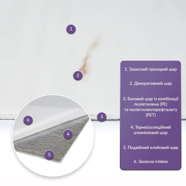 Матеріал: PE+PET, складається з суміші двох полімерів: поліетилену (PE) та поліетилентерефталату (PET) Розміри: Рулон: 60 см х 300 см х 2...
