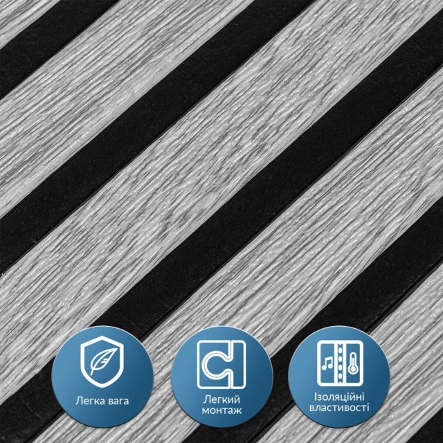 - Легкість монтажу: наявність клейового шару дозволяє встановити панелі без необхідності застосування додаткових матеріалів.