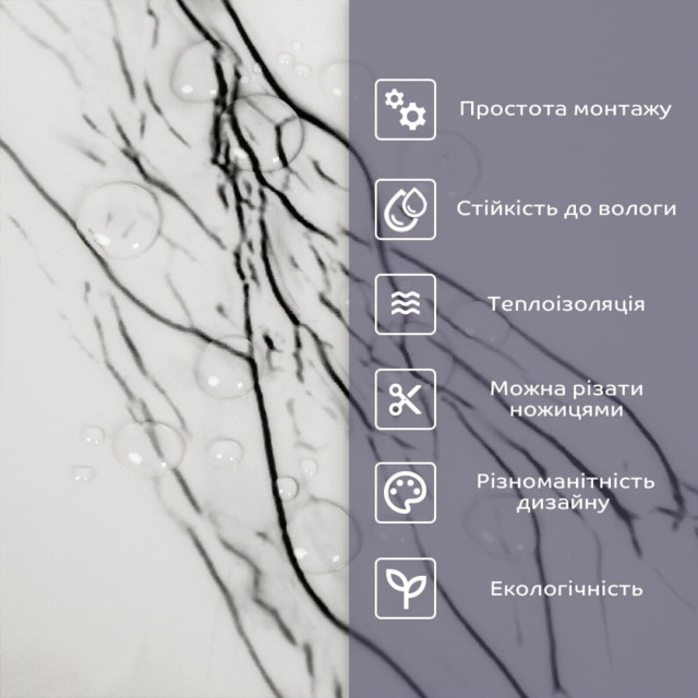 • 2. Стійкість до вологи: матеріал стійкий до впливу вологи та пари, а також до появи плісняви, що робить його придатним для використання у приміщеннях з високою вологістю, таких як ванни та кухні. Плитка підходить для створення фартуха кухні, можна клеїти біля плити на відстані не менше ніж 20-25 см;