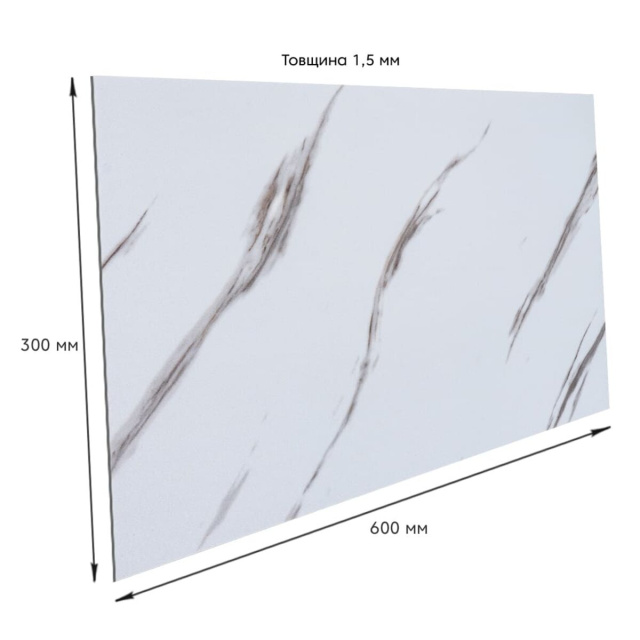 Площа покриття: 60 см х 30 см х 1,5 мм – 0,18 м2, кількість на 1 м2 – 6 одиниць